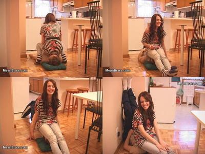 Celine ist eine süße, aber auch sehr freche Göre! Das sieht man ihr auch sofort an! Und heut möchte sie unbedingt mal wieder auf einen Sklaven sitzen. Dafür hat sie sich extra ein sexy Höschen angezogen. Der Sklave liegt auf dem Boden und sofort beginnt sie damit ihn platt zu machen. Sein Kopf wird dunkler und mehr und mehr rot, er bekommt dort unten kaum noch Luft. Aber die brauch er schließlich auch nicht, denn seit wann kann ein Sitzkissen atmen...?